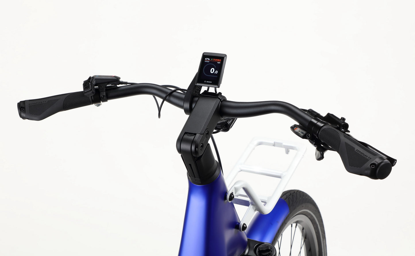 | Stem | Satori Catamaran stem, 95 mm extension, 70 mm reach, 0°–90° angle adjustment, Integrated Bosch Kiosk display mount |